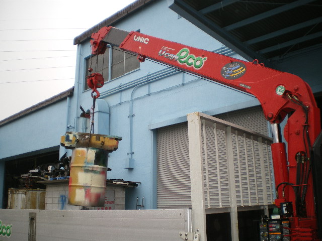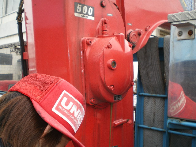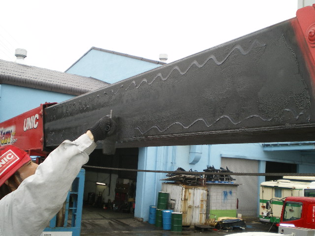 ★ブーム摺動部へのグリスアップ普通のグリスとは違います、高荷重に適したモリブデングリスを塗布します。ブームと摺動板の動きをスムーズにします。他にもフートピン、デリックシリンダー上下の支持ピン、ウインチドラムギヤー、旋回ギヤー、各ベアリング、プロペラシャフトなどへも給油します。