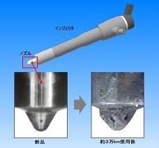 ←このようにインジェクターの墳孔は、とても小さく(0.1~0.3mm)